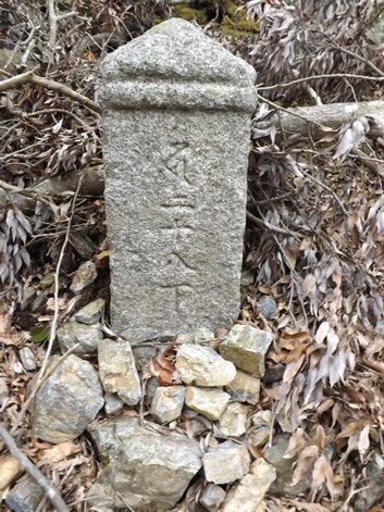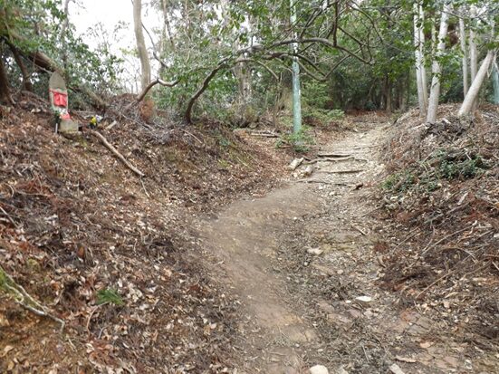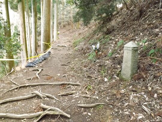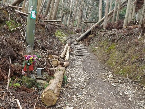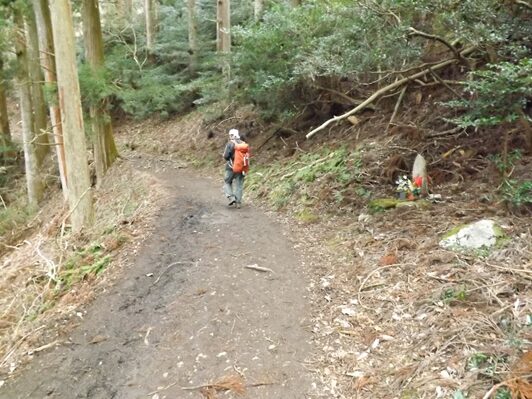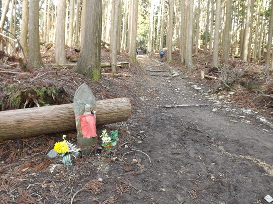 右斜面にも お地蔵さん 急な登りが続き平坦な道はないです、この辺りに来るとかなり足にきました