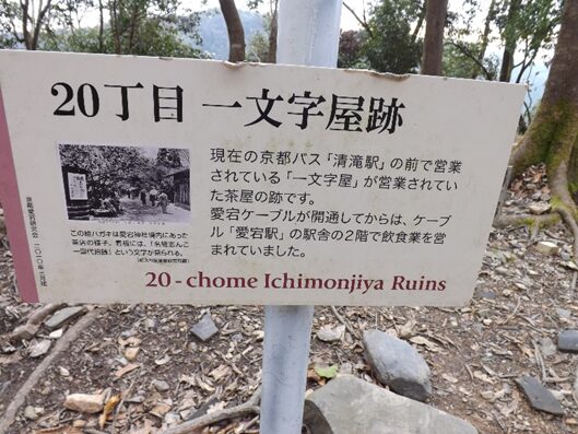 現在、京都バス清滝駅の前で営業している「一文字屋」の茶屋跡です元ここで営業していたのだ