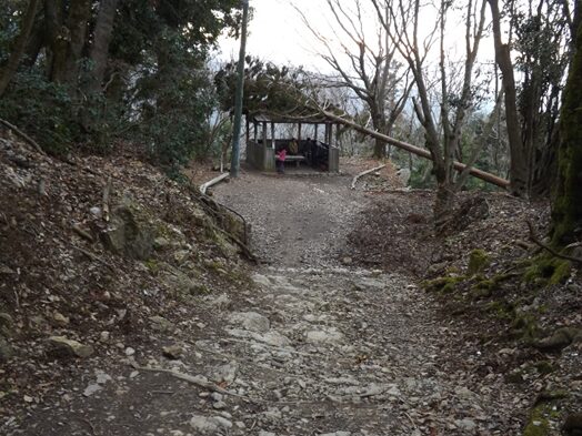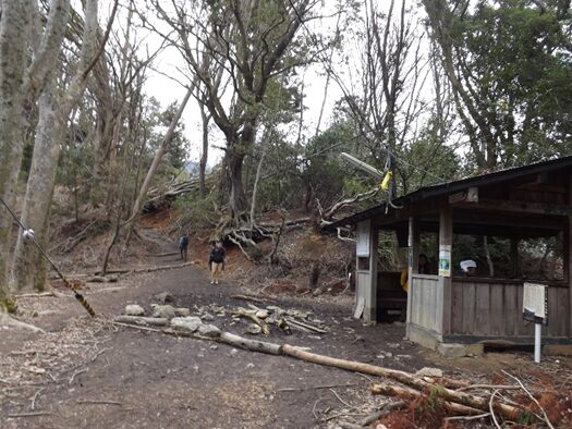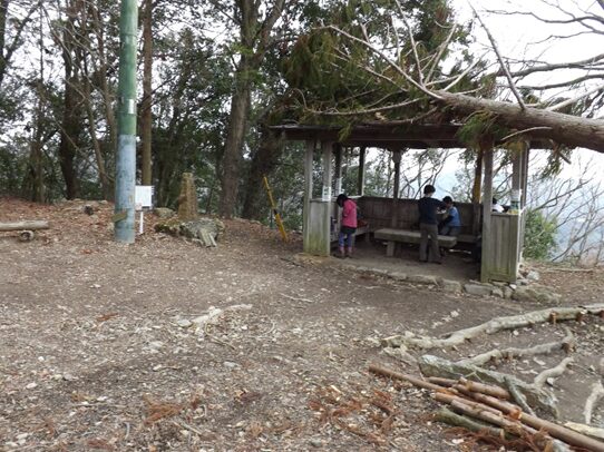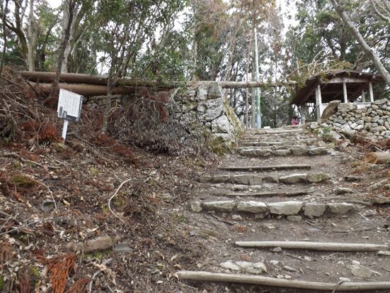 石垣が組まれ 茶屋跡 です。変わりに休憩小屋があります休憩されています