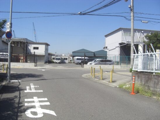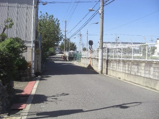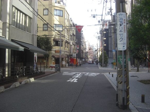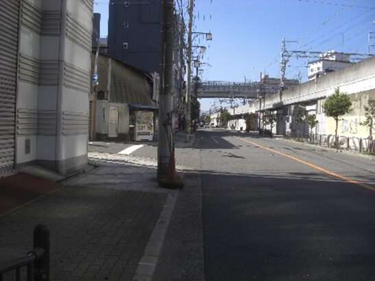 すぐ目の前に南海電車のガードがあるので、ガードの手前を少し左に折れる、そぐ広い道にでるので