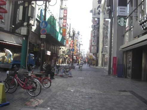 戎橋を渡り、再びアーケードに入るが、手前東西の道は道頓堀筋