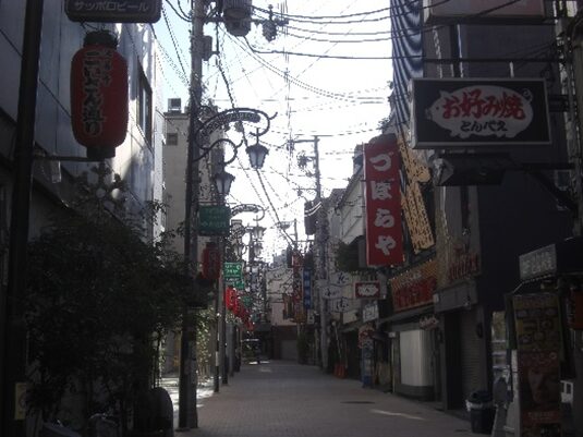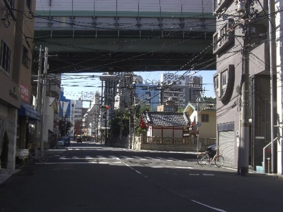 広田神社を左にみてその先で阪神高速の高架下を潜り進む、恵比須西に入る