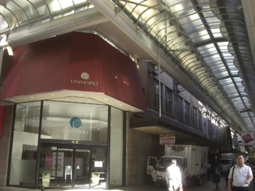 すぐ右に大丸百貨店を見ながら通る