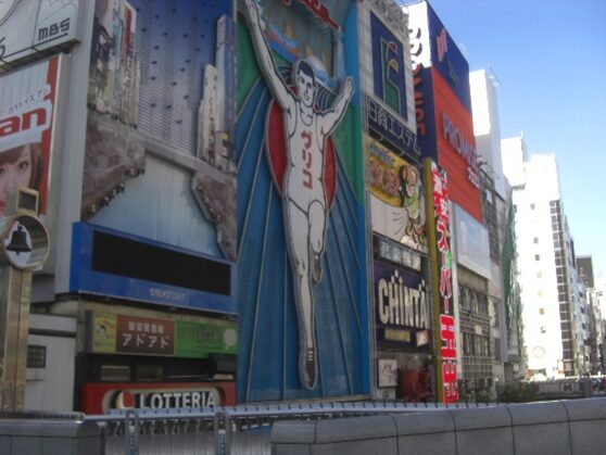 橋の右前にグリコの大きな看板