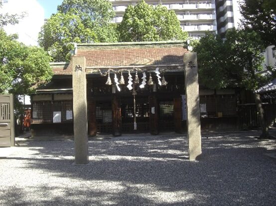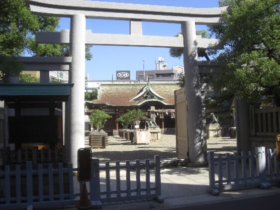 推古天皇の御宇御鎮座以来市場鎮護の社と広く尊敬され特に大阪が商業の町として発展するに伴い其の唯一の守護神として親しまれてきた。例祭は十日戎と呼ばれ江戸時代からすでに大阪年中行事の一つに挙げられ広く市民に支えられ益々盛大になっている