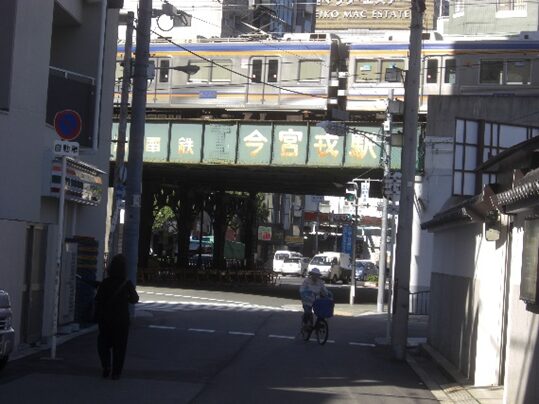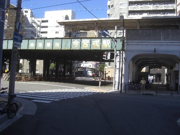 右に折れ今宮戎駅のガードを潜る
