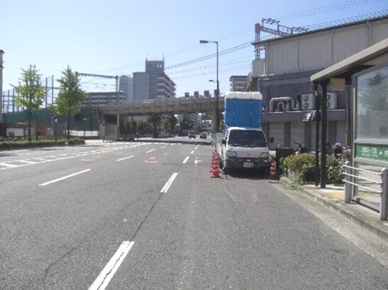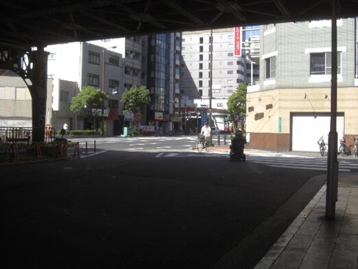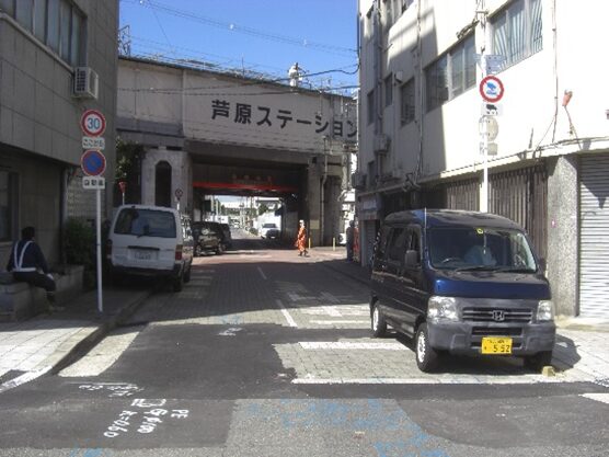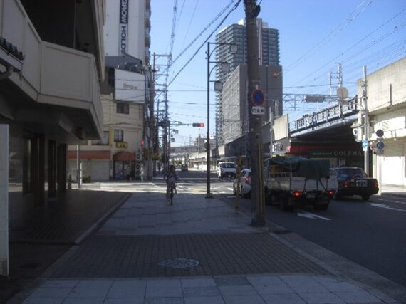 右折れして直進し大阪環状線の芦原駅の下を超え真っ直ぐ進む