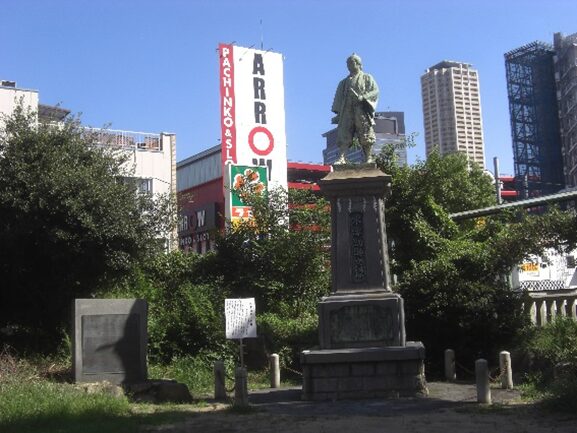 境内に建つ 木津勘助の像