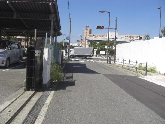 踏切を渡ると陸橋があり少し広場となっている。そこから街道を振り返る