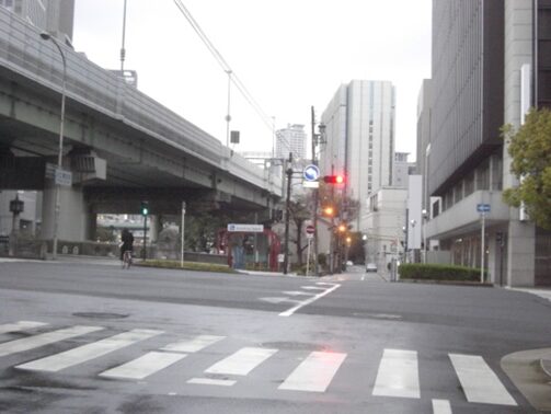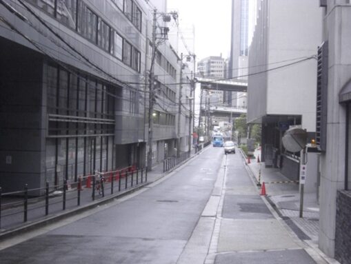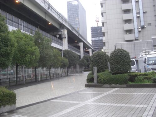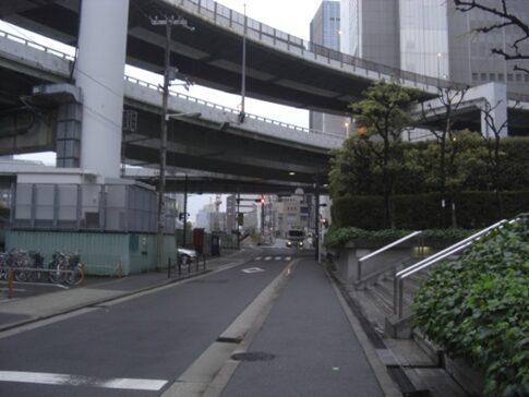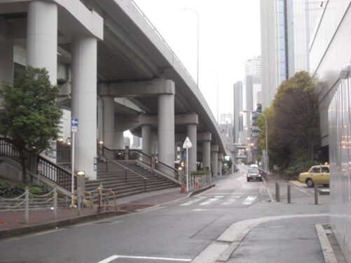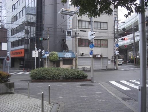 御堂筋を渡り、右にANAクラウンプラザホテル大阪、道を挟んで左側、高速道路高架下に