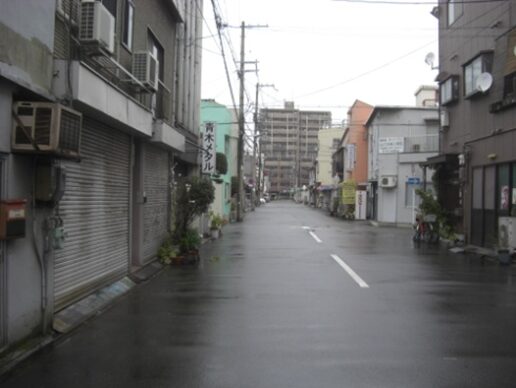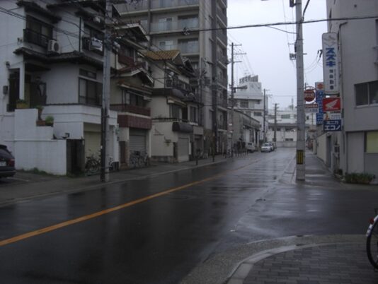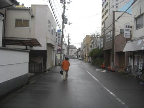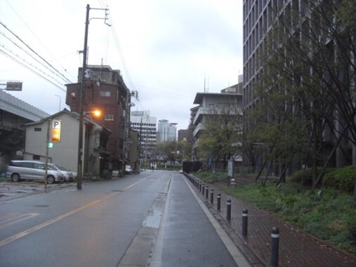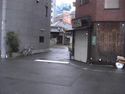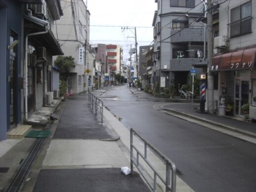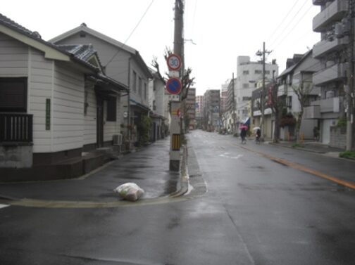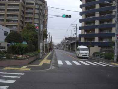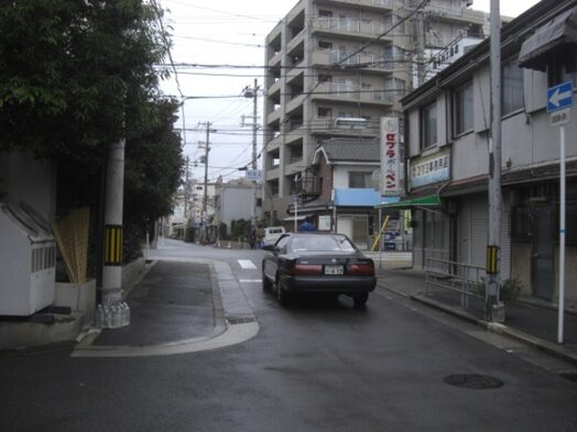 左に折れたところの道筋 この辺りは大淀南3丁目9