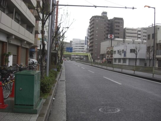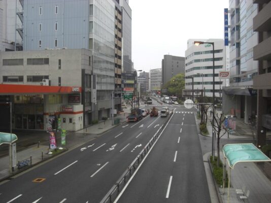 交差点より四ツ橋通りの北方面、北へ一方通行
