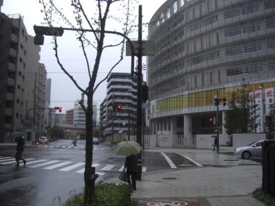 四ツ橋交差点を超えて進む、右手に堂島ホテル