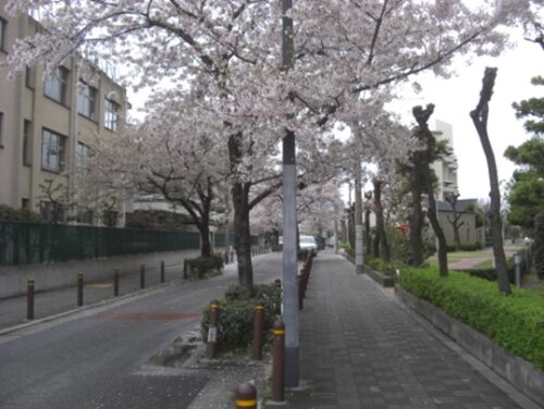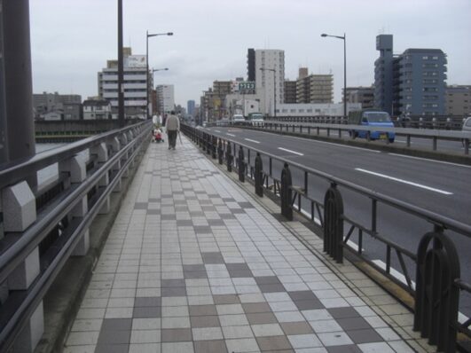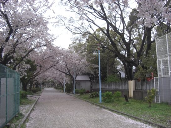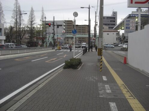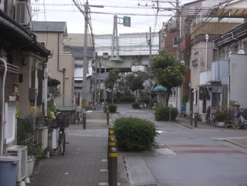 東西線の御幣島4交差点を超える。右角にレストランさとがある。さらに、西へ進んでいく。1つ目の信号交差点右に、大阪労働衛生センター体1病院があり、そこの信号交差点を少し左に入ると光明寺があり、交差点に戻り、100mほど進むと神崎川に突き当たるのだが、神崎川は見えない。住宅が立ち並ぶので、そこを左に折れて進む。