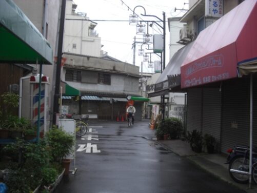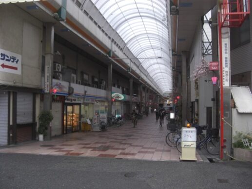 立派なアーケードの商店街通りだが人気が少ない商店街の先は、JR塚本駅
