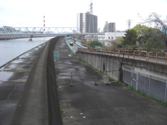 御幣島4丁目の右に神崎川に沿って暫く進みます
