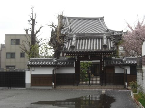 街道が正しいかわからないが、右に神崎川を少し離れて北に進む。右に、キングマンション千船4番館の所を、左に入ると、浄土真宗西法寺 この先は川が合流(分流)する三角州になっている