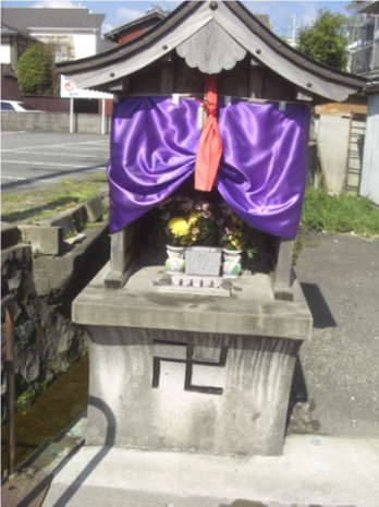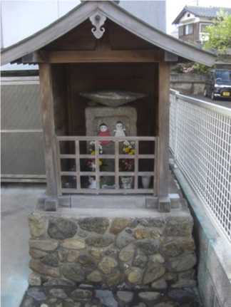 朝ホテルを出て亀岡駅までの道沿いで、可愛い 祠 を見つけた(西友の北側)