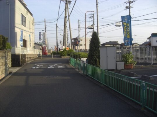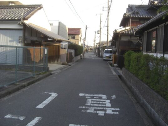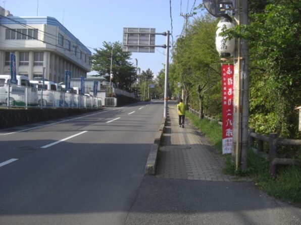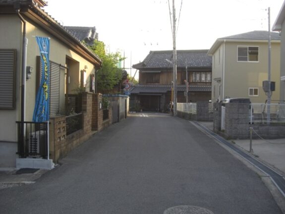 駅前に出て目の前の広い道を左に折れる、少し先の右の二筋目で右に折れる