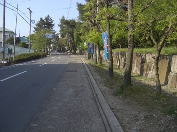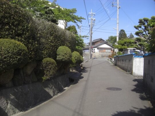 亀山高校辺りの街道は 外在番跡 城番人がおり大手門東側の御館より南側外堀の対岸に位置し、場外警護の役割