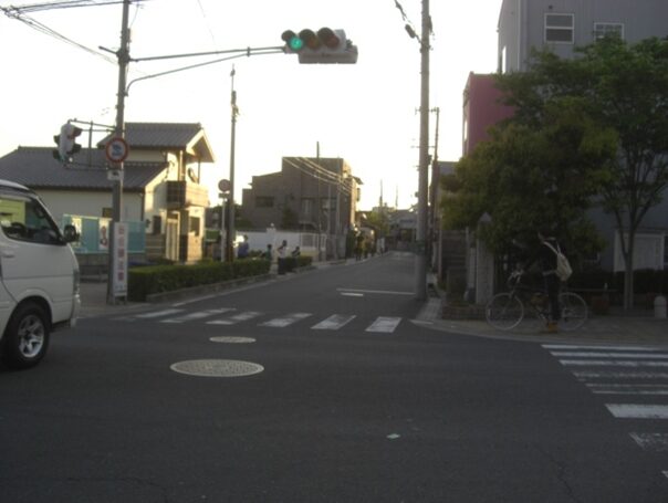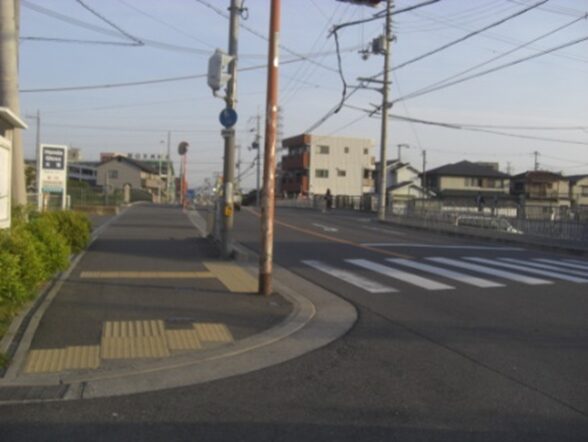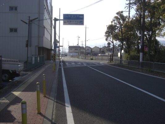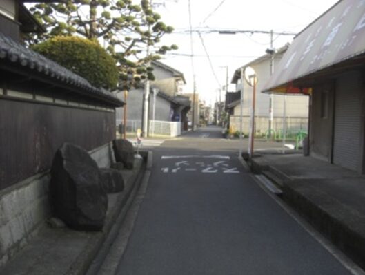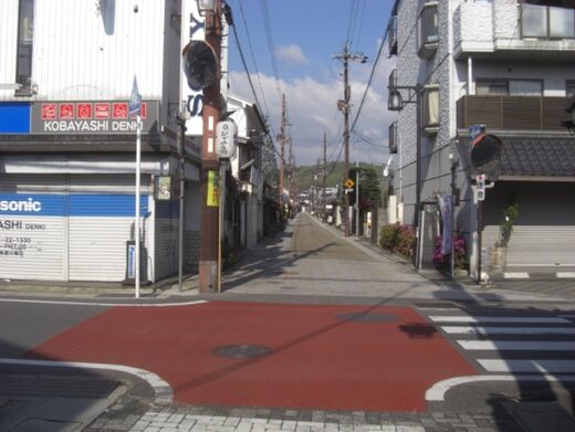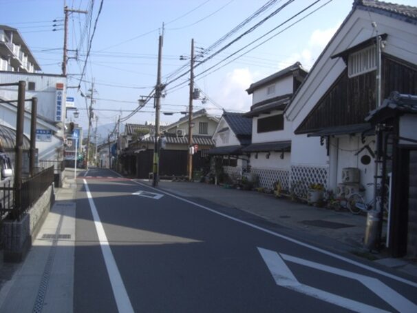 橋を渡るとすぐ交差点が 西国街道の交差の辻 で東西に通る