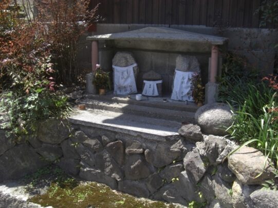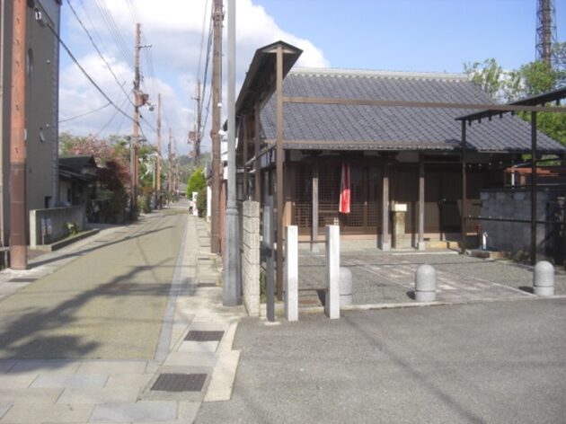 四辻の右手前角の 古世地蔵堂 源頼政を祀る、「矢の根地蔵」が安置されている