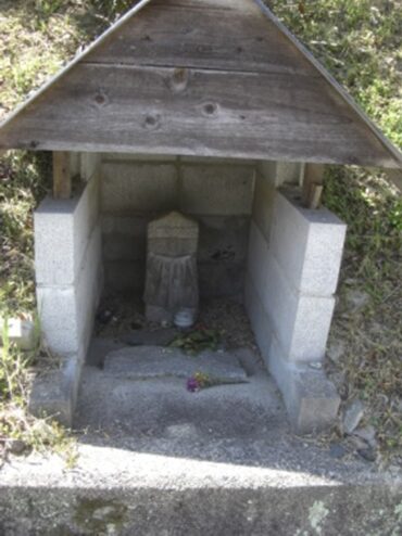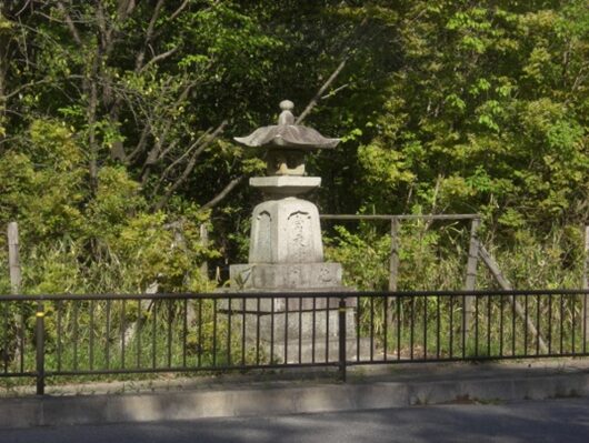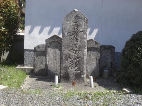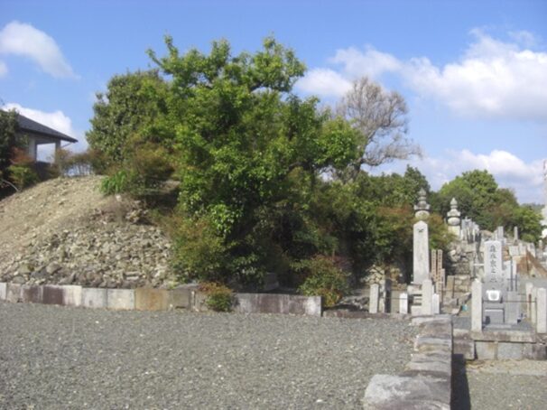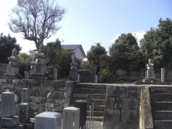 大きな 五輪塔 が立つ、高さ2.25m茨木市内最大で、室町時代1445年のもの