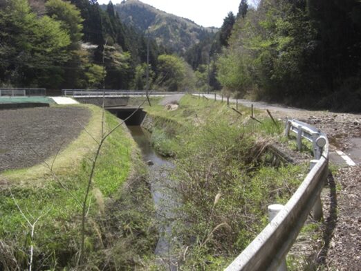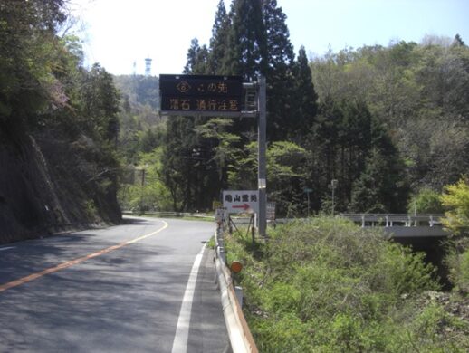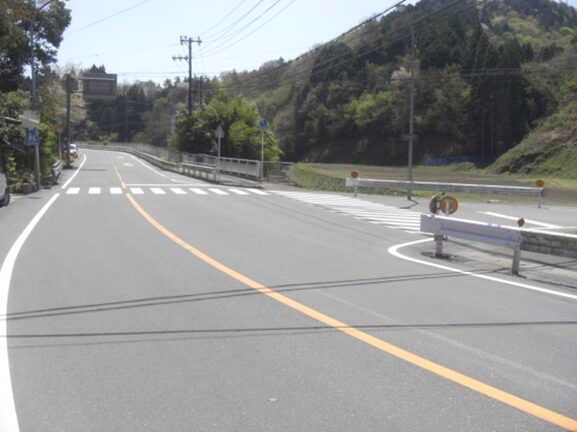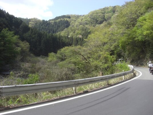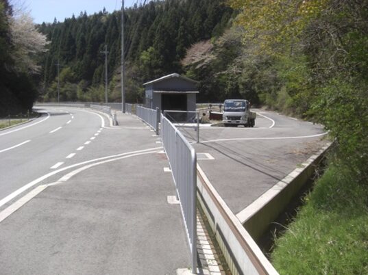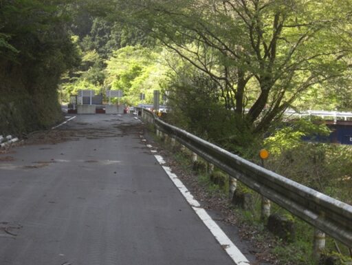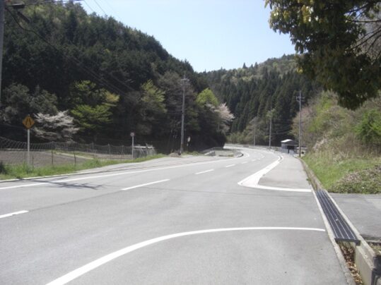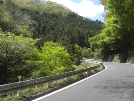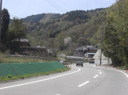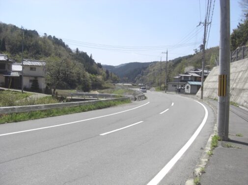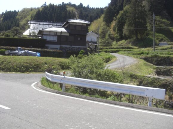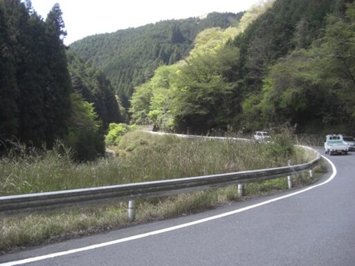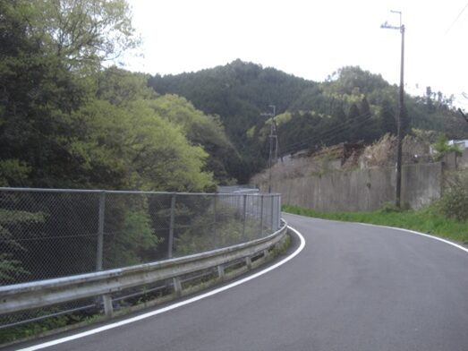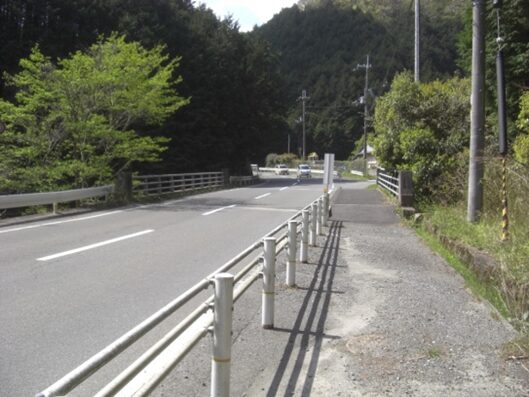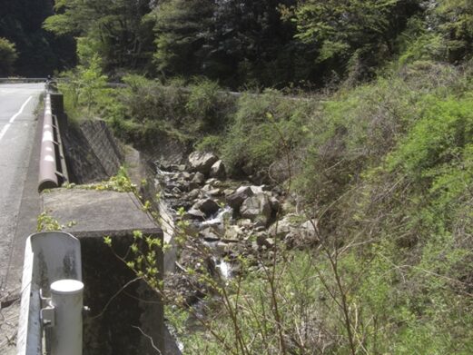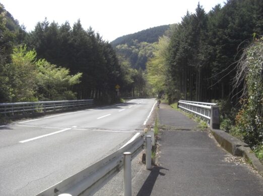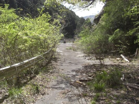 街道は年谷川に沿って蛇行して進む旧道跡のような廃道が右に、ところどころに廃道化した旧道跡があります