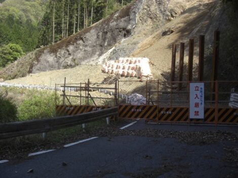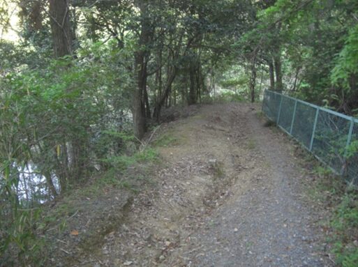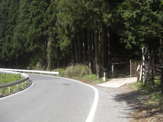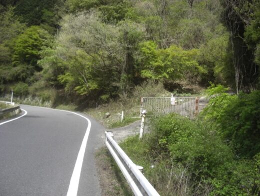 ここにも旧道跡の廃道、歩けそうだが先が分からないのでパス。柵がされています