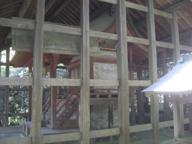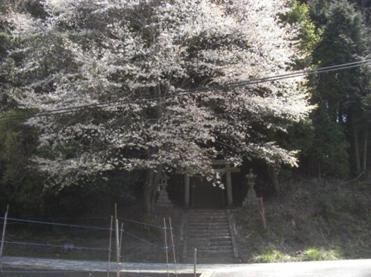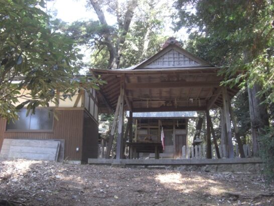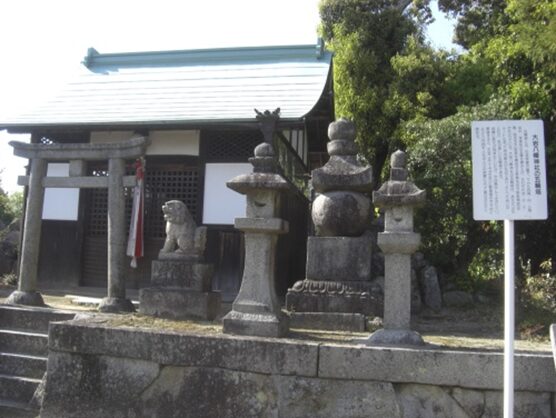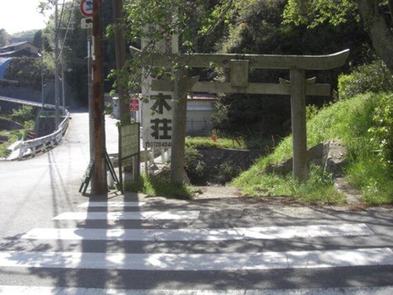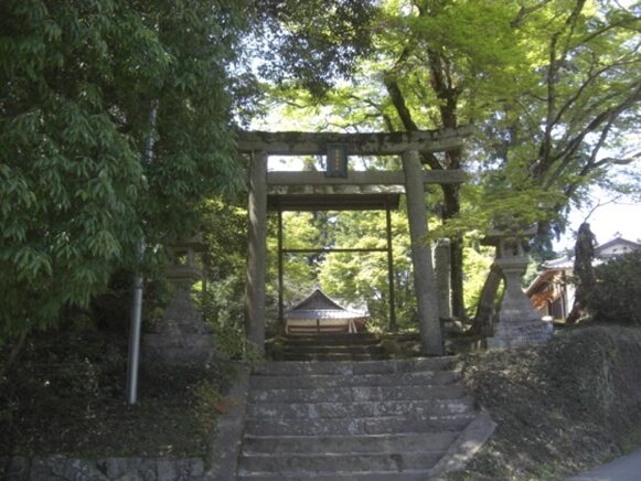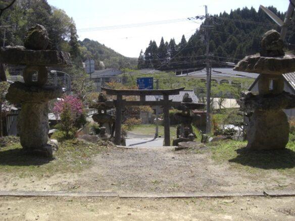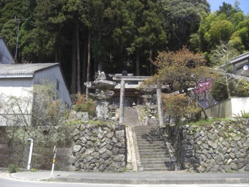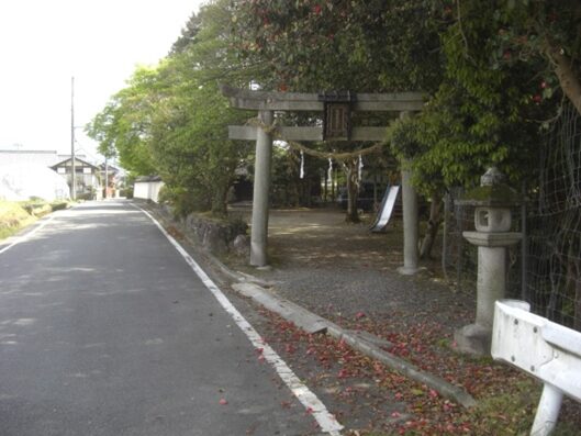 分岐点から少し南へ街道を進んだところ右に大きな民家があり左奥に 大岩八幡神社