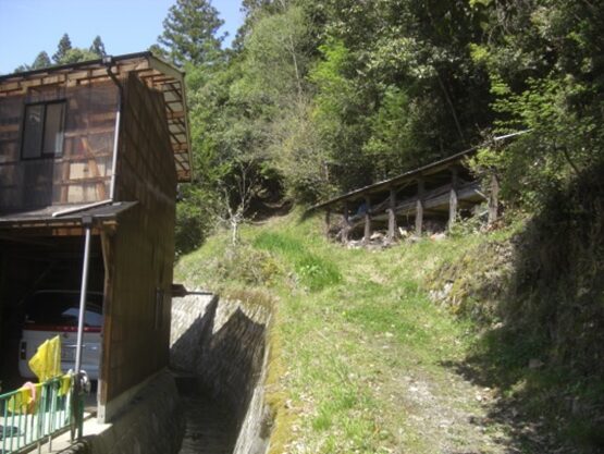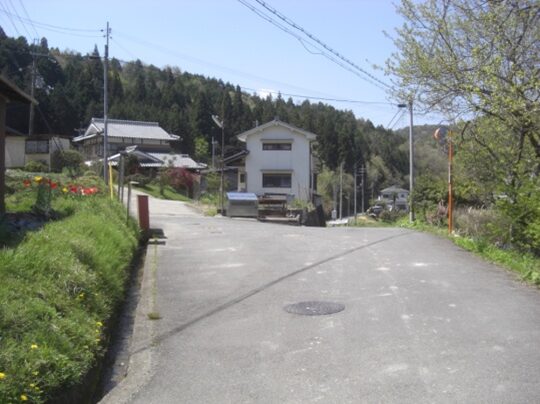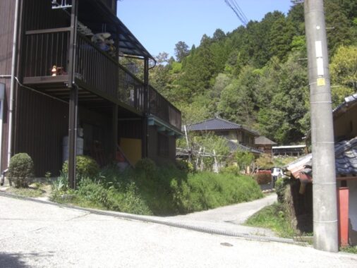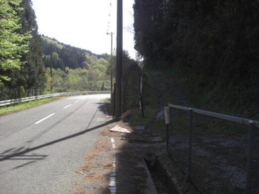 大岩バス停の所で左への旧道が、民家の裏側にあったが今は消失している
