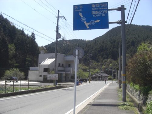 亀岡城下南へ~年谷川に沿う~東別院町小泉~東別院東掛~清阪峠~茨木市の忍頂寺~茨木市大岩~茨木市福井で亀岡街道に合流~茨木市中河原橋の南で西国街道に合流