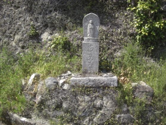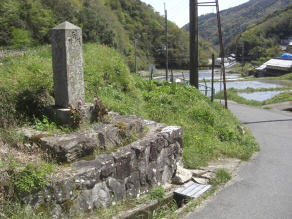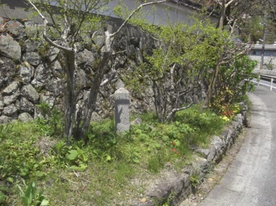 橋を渡り右にカーブする民家の石垣の袂に、地元の石門心学の祖といわれる 石田梅岩の生誕の地の碑