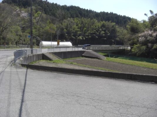 左側に旧道の名残として、4号橋~1号橋まで見てきた。少し広場になって左への旧道があるが廃道になっている。ここで亀岡市から高槻市に入る、桧尾橋を渡る