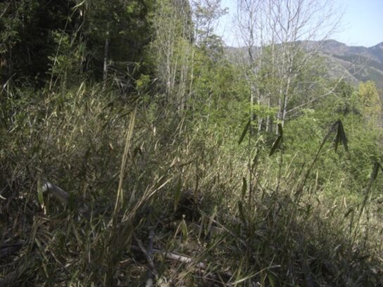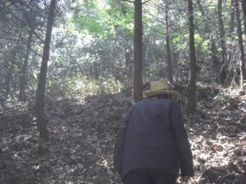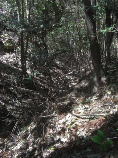 これを見ていた別の地元の人が怒った声でなにしてると尋ねられた、理由をいうとなんとか歩けるから途中まで案内してあげると分かるところまで案内してくれたが、とても1人では分からなかった。そこで道らしきあとを教えてくれて上るが、微かに旧道らしき窪み道がある、でも藪が茂り、竹や木が倒れて喘ぎながら上る。短い距離であったが廃道化した道は長く感じ、やっと旧峠に着く。多分私が最後の歩いた人になるだろう。また1年の内では今のこの期間で良かった。それ以外では全く無理であった。