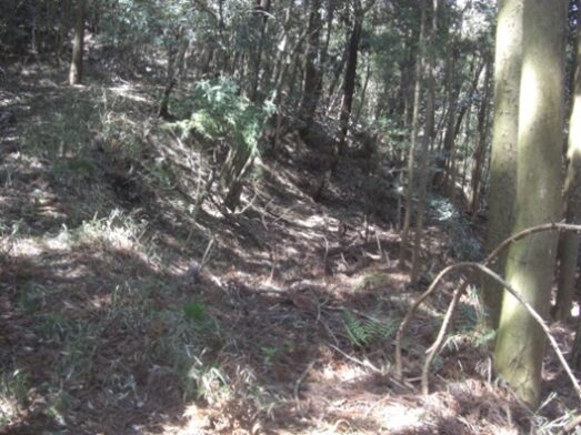 山から延びる尾根の先端の台地上に築かれた一種の山城で、この辺りに本丸・城ヶ谷・構えなどの地名が残り、亀岡街道から真龍寺参道に入る中間北側が大手門で、それより北側へ、三の丸・二の丸・本丸・搦手跡と続く。