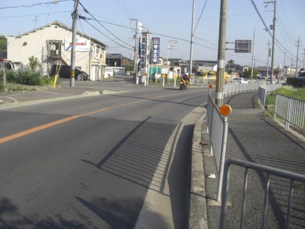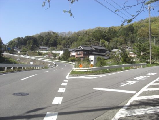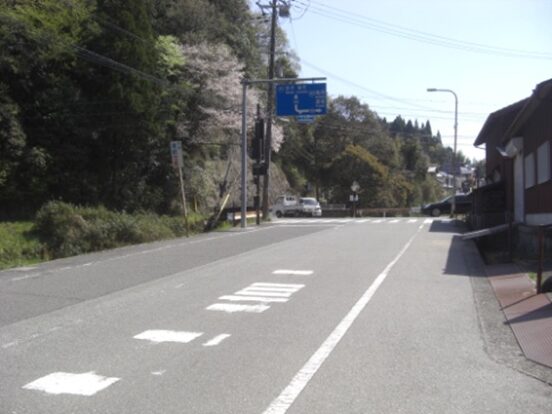 交差点を右に折れたところで、すぐ先で、右に新道を分け左の旧道(南東)に入る