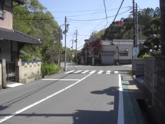 お寺から下りて来たところで四辻を左に折れると、旧道発見の清阪街道。つづきをもう少し歩きます