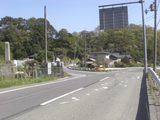 亀岡街道は左へ、右真っ直ぐが清阪街道の辻を見る分岐する角の 道標 振り返ったところ