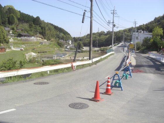 明治25年(1892)からの工事で、荷車の通れる道にするために、上福井から佐保川沿いを北上して余野(豊野町)に出る新道ができ、亀岡街道となりました。ほぼ同じころ、上福井から清坂への道の付け替えもあり、これは清坂街道と呼ばれました。