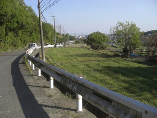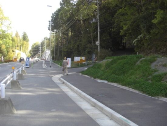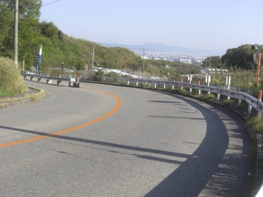 手水ヶ谷バス停に来ると、前方に茨木市が一望できる下り道が続くが全く旧道の面影は残らない