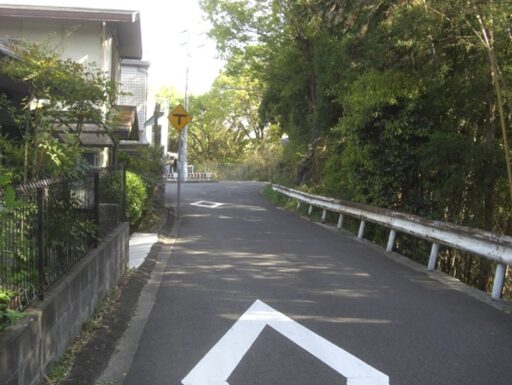 山手台の住宅地で行き止まり街道は消失,広い道を左に進み、右一帯に山手台を見ながら、山手台5丁目・山手台6丁目で、先ほど歩いてきた清阪街道に出る