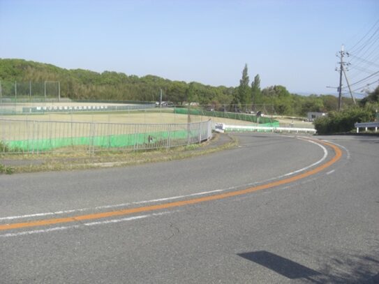 この春日坂はかつて亀山城の内堀を埋め立てた跡 左に春日坂球技場