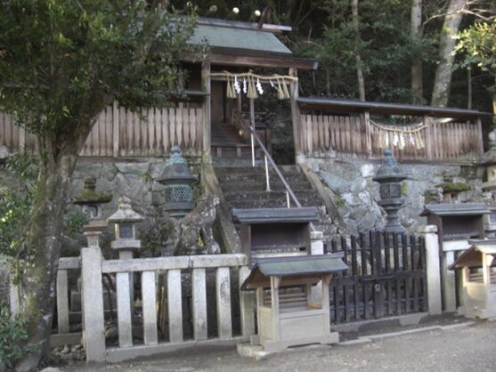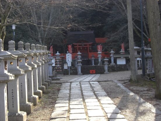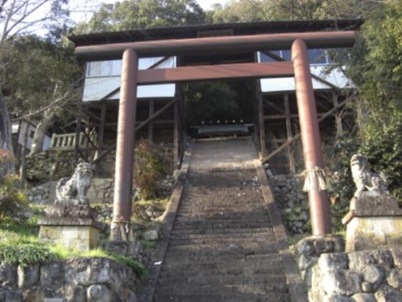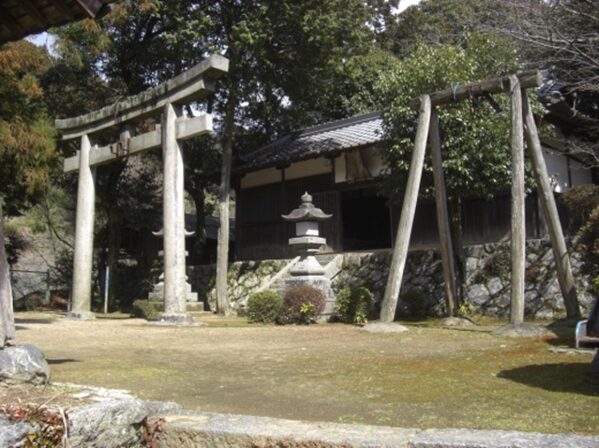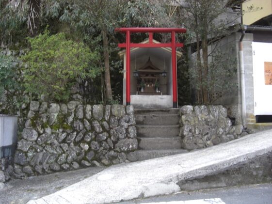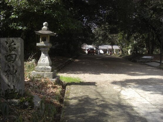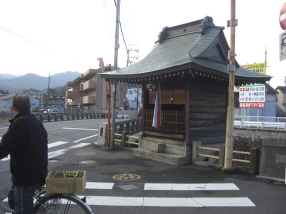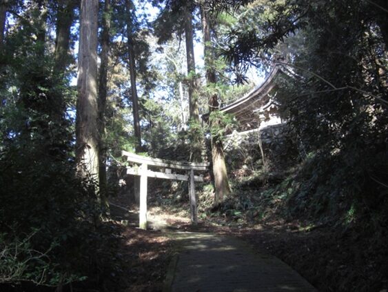 日もだいぶん落ちてきましたガソリンスタンドのところで国道を左に分け、右の細い道が旧道。その右手高台に神社があります