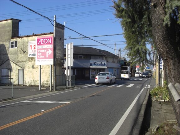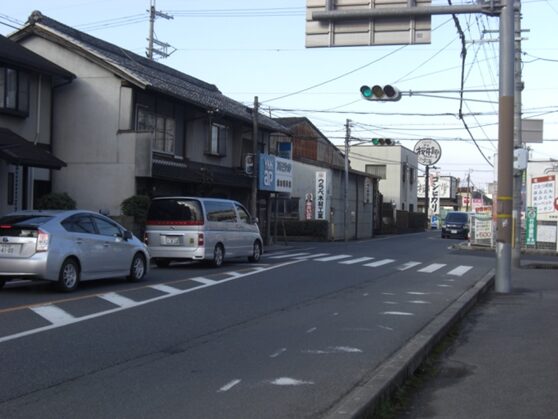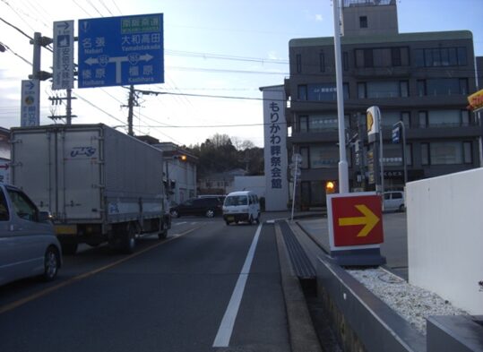 100m程先の二つ目の谷田信号を左に曲がる。磐余の道はここを南下する起点です。
