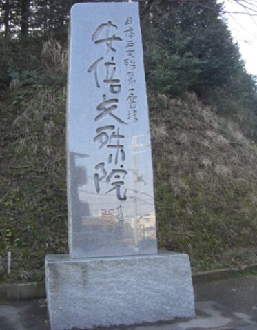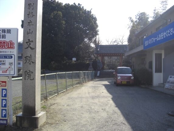 安倍郵便局の少し先を左に折れて少し歩くと右手に新しい 安倍文殊院の石碑 があります