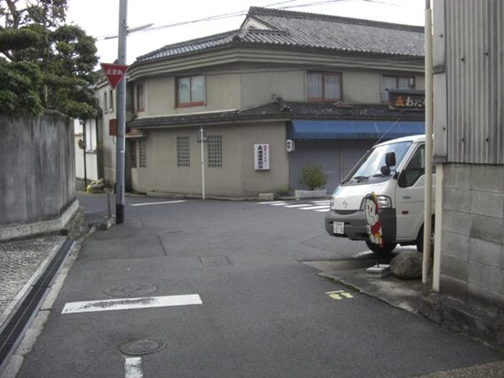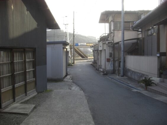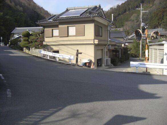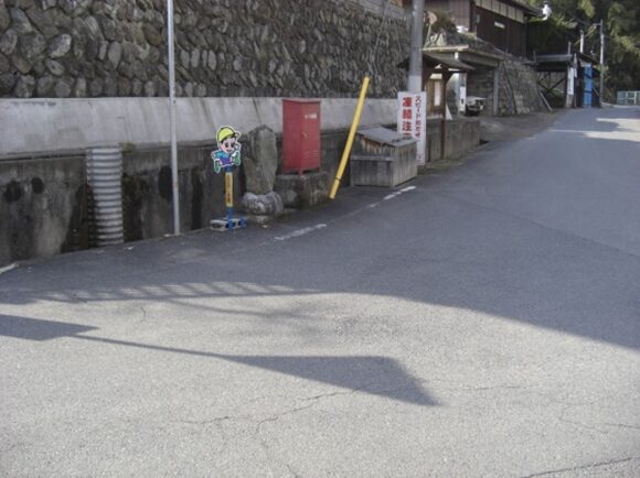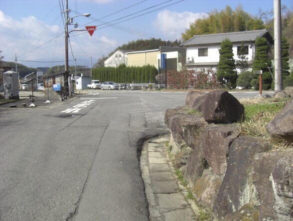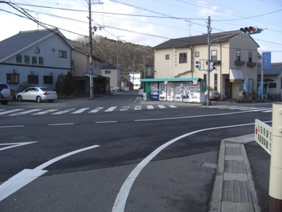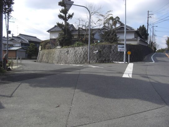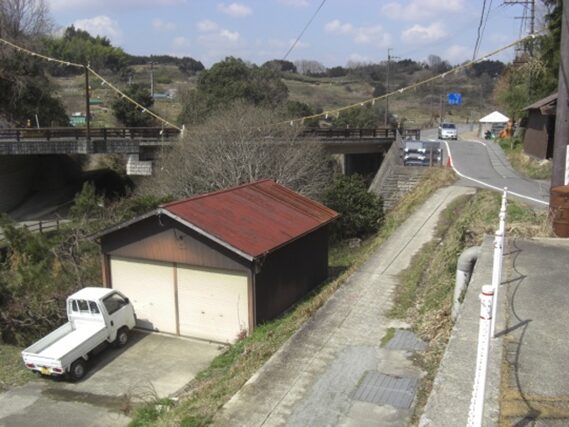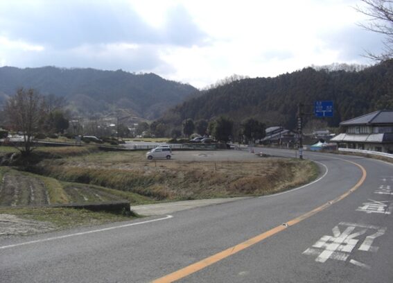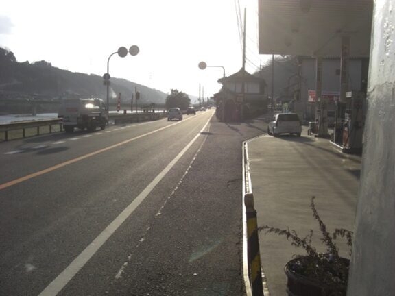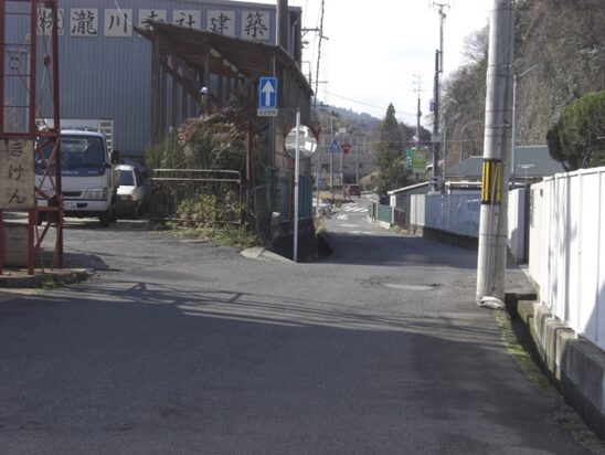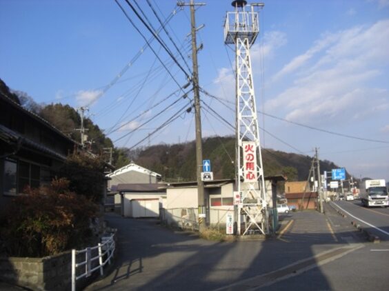火の見櫓のところが国道に合流して出てきたところを振り返る