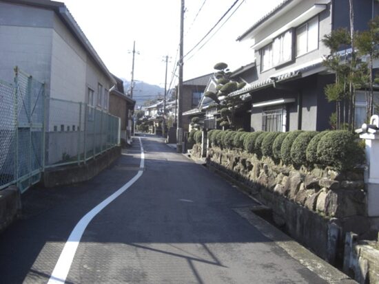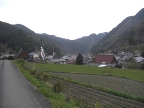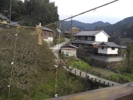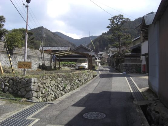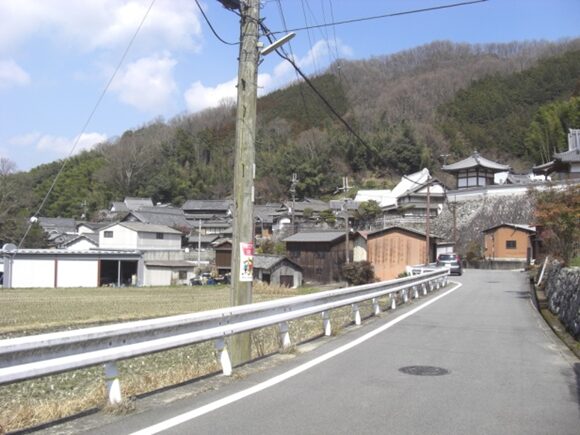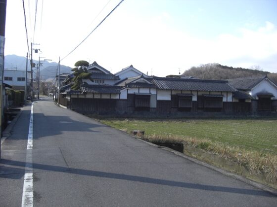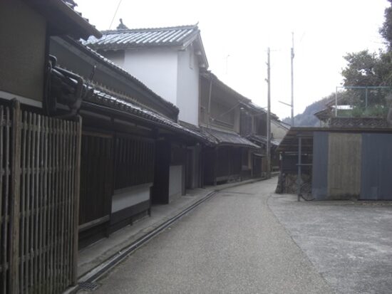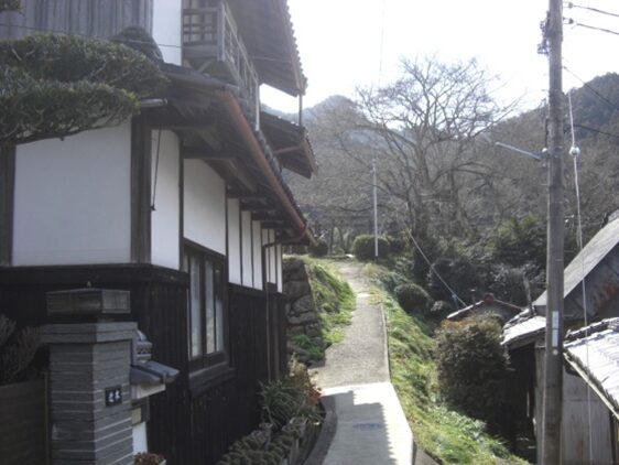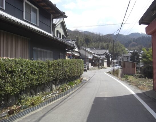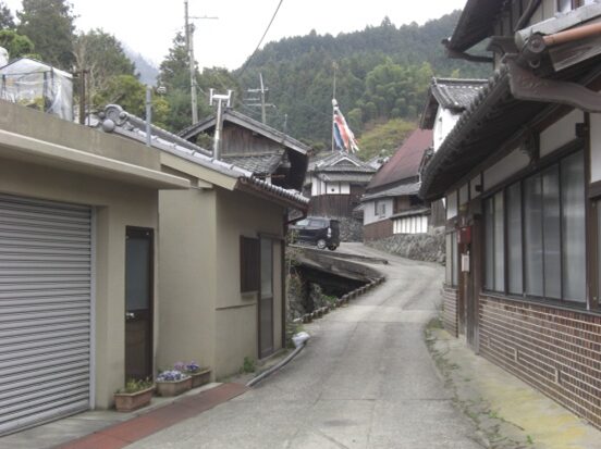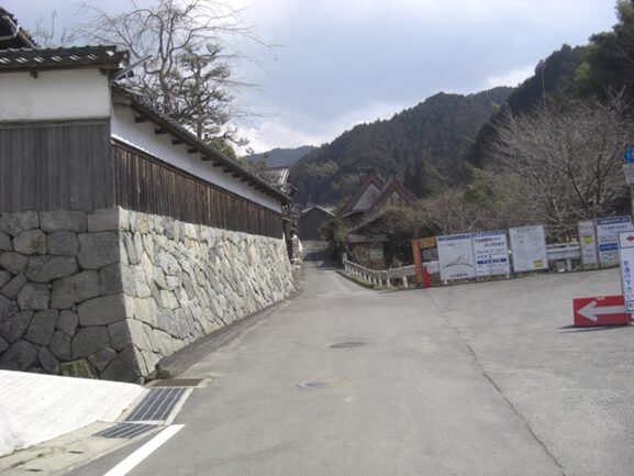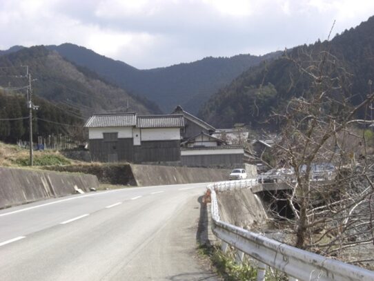 この辺りには大きな旧家がたくさん残り、その先右にカーブしながら進みます