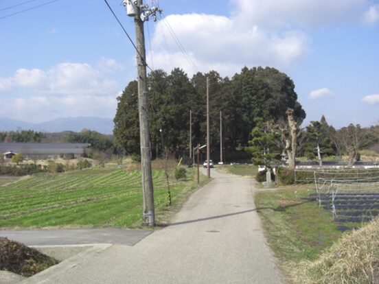 その手前右手にあるのが、藤原鎌足誕生の地といわれている。小原の里の小原神社