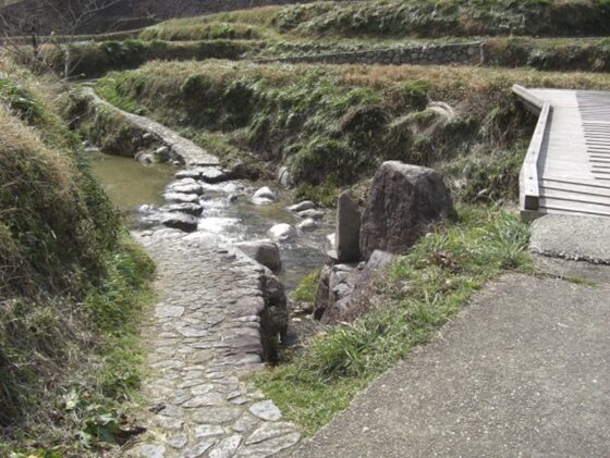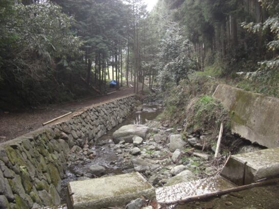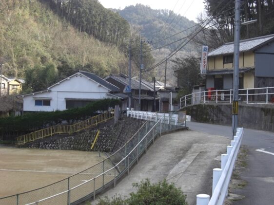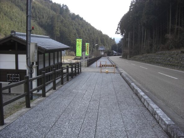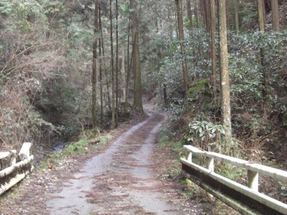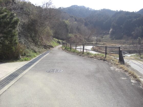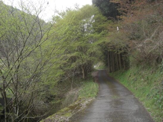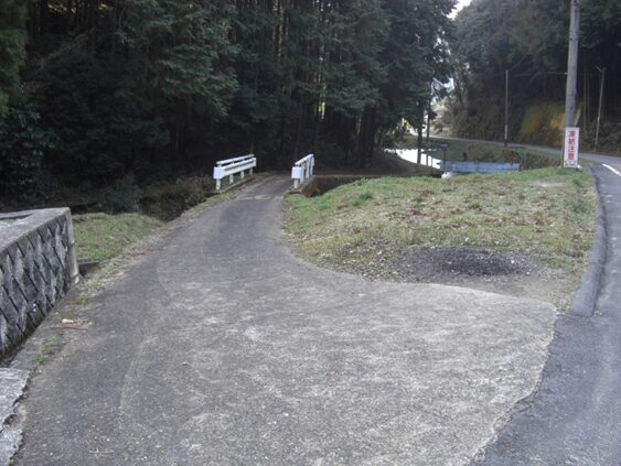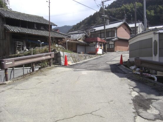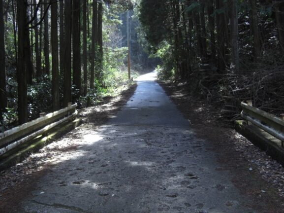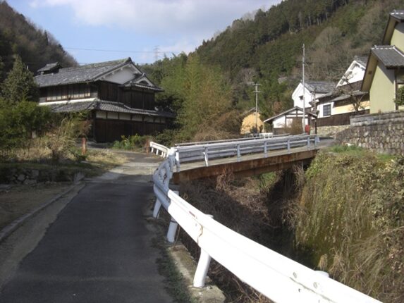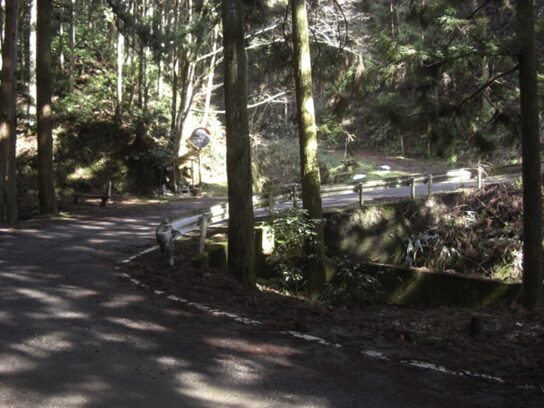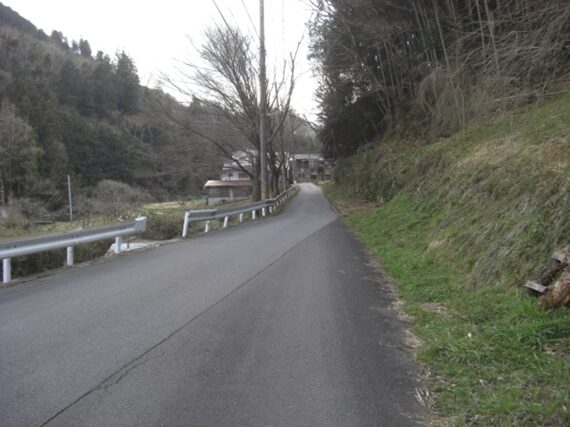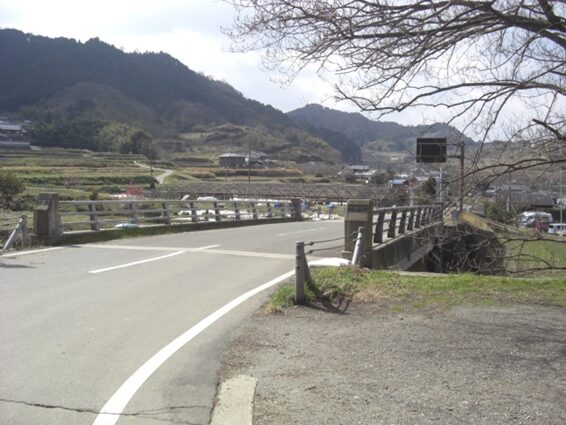 古道を下ってきて橋を渡ると、芋峠から曲がりくねりながら降りてきた新道に突き当たります